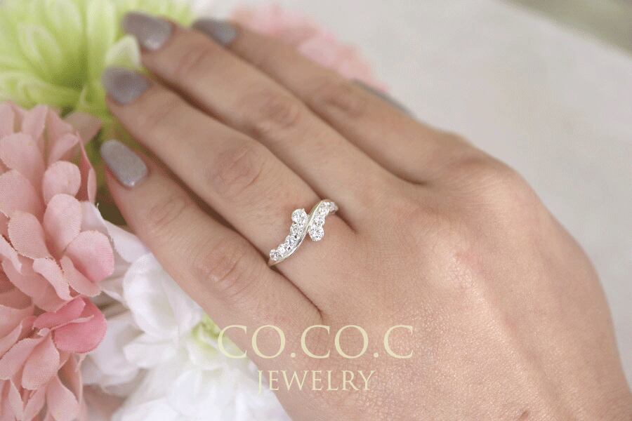 スイート10リング ウェーブ プラチナ950 レディース サイズ 6号~18号 合計0.5ct クラリティ:VVS1~VS1、カラー:FカラーUP、カット:EX~VGのダイヤモンドを使用しております。 柔らかなひねりを加えたアニバーサリージュエリーです。 溢れるような10粒のダイヤモンドが10年の輝きを讃えています。 プレゼントにおすすめです。 商品は御注文頂いてからお作り致します。お届けまでに3週間程度かかります。